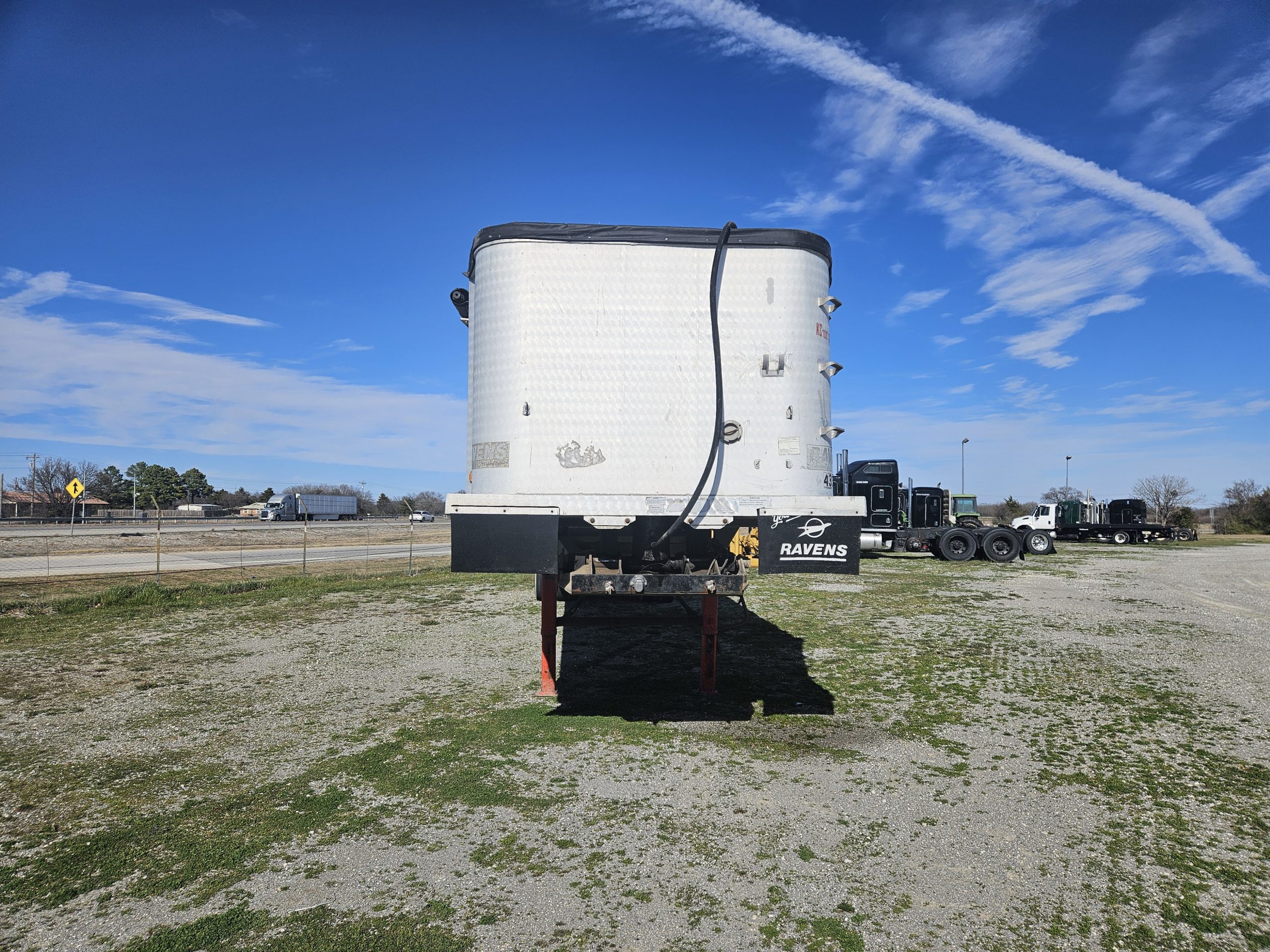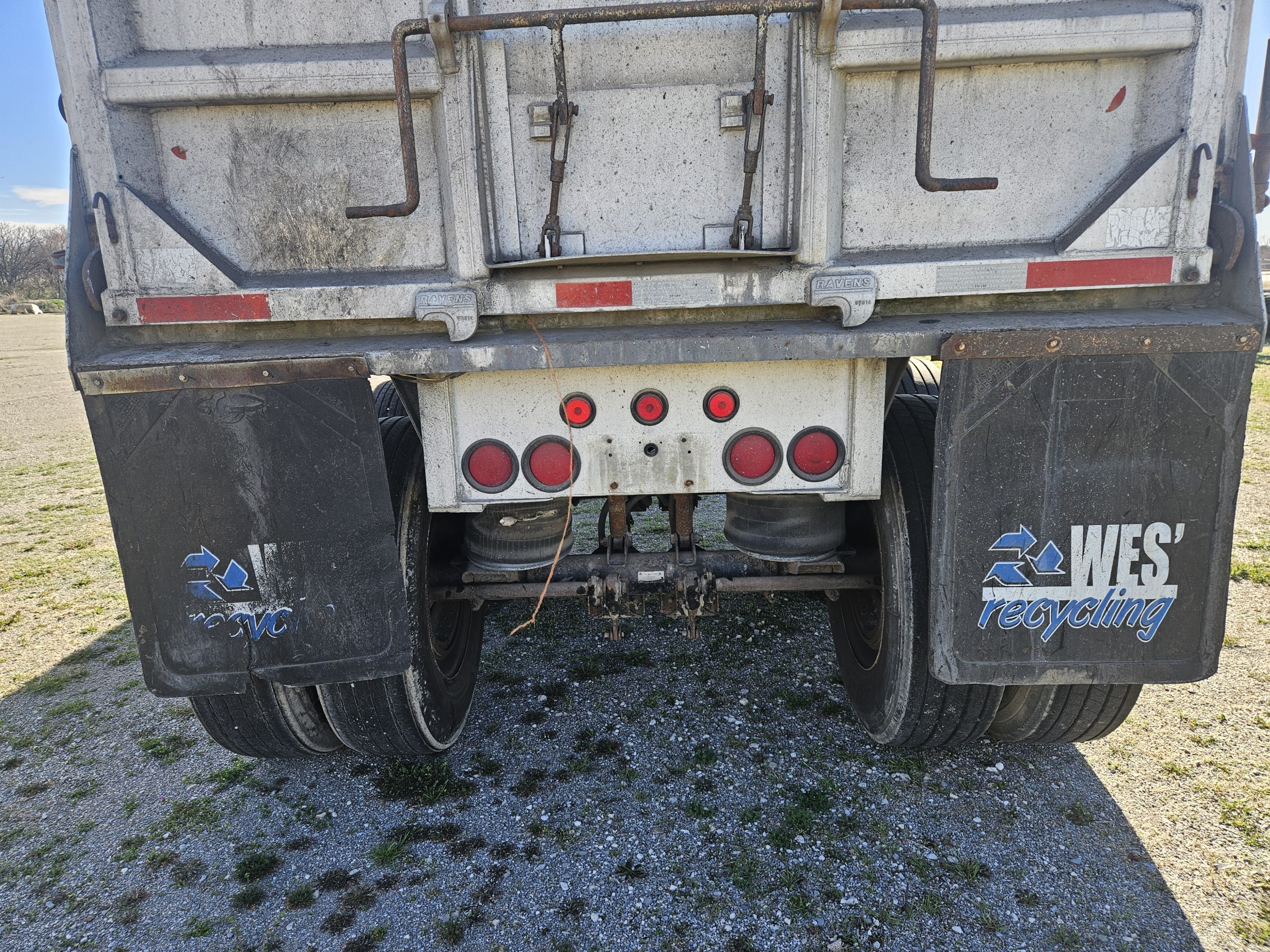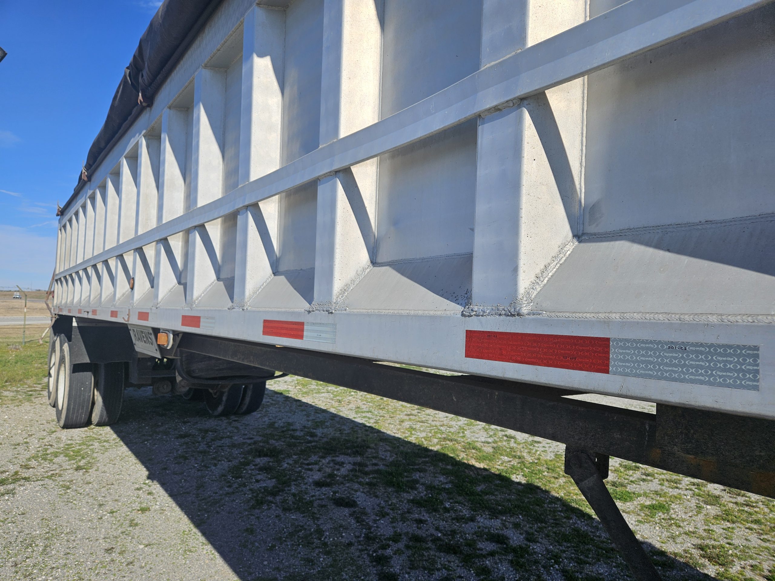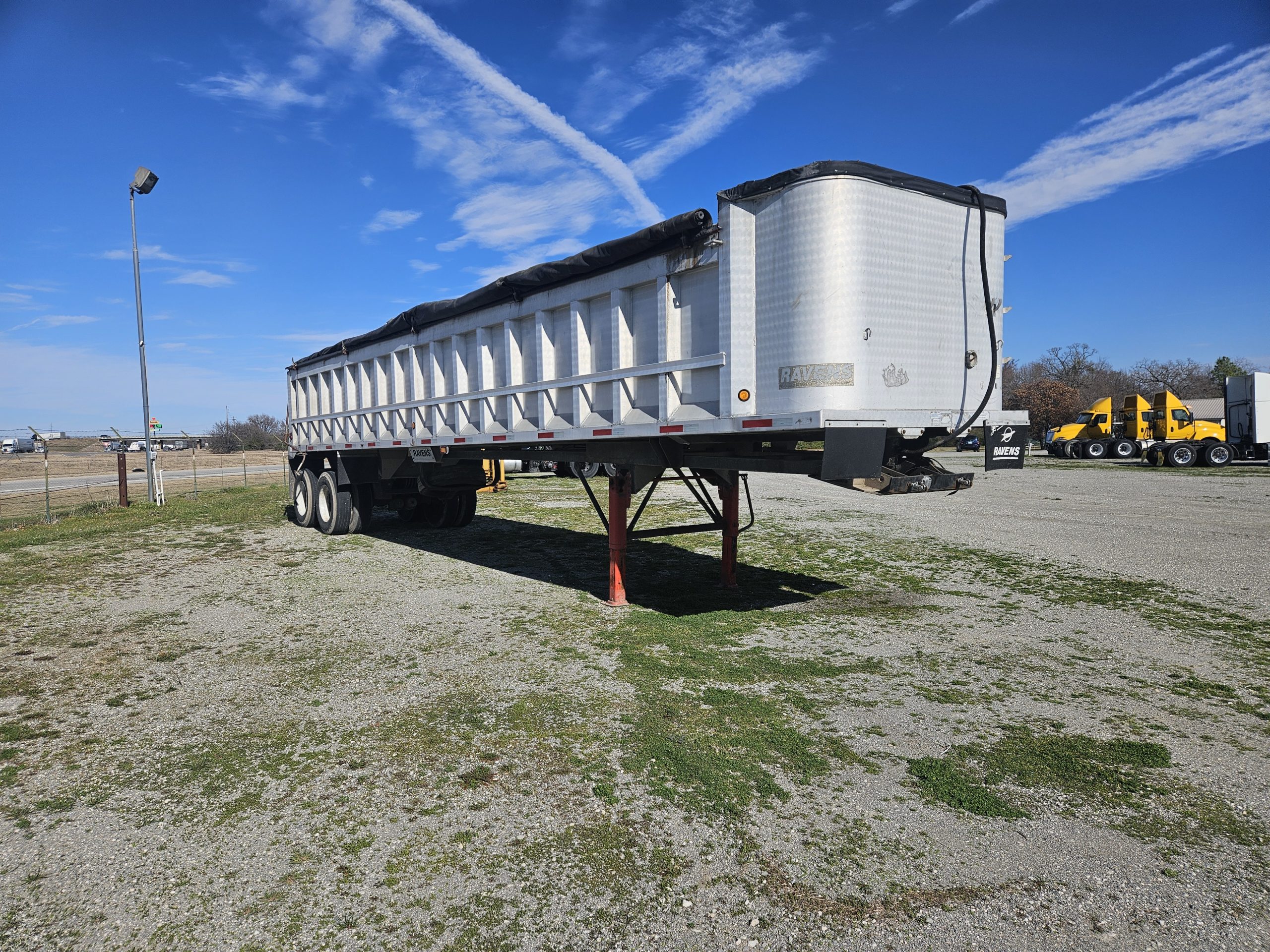 1994 Ravens 38 foot aluminum end-dump trailer.